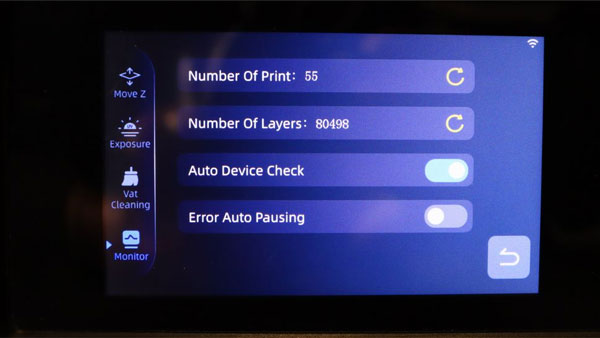 • Pausar automáticamente la impresión para evitar desperdiciar resina y tiempo.