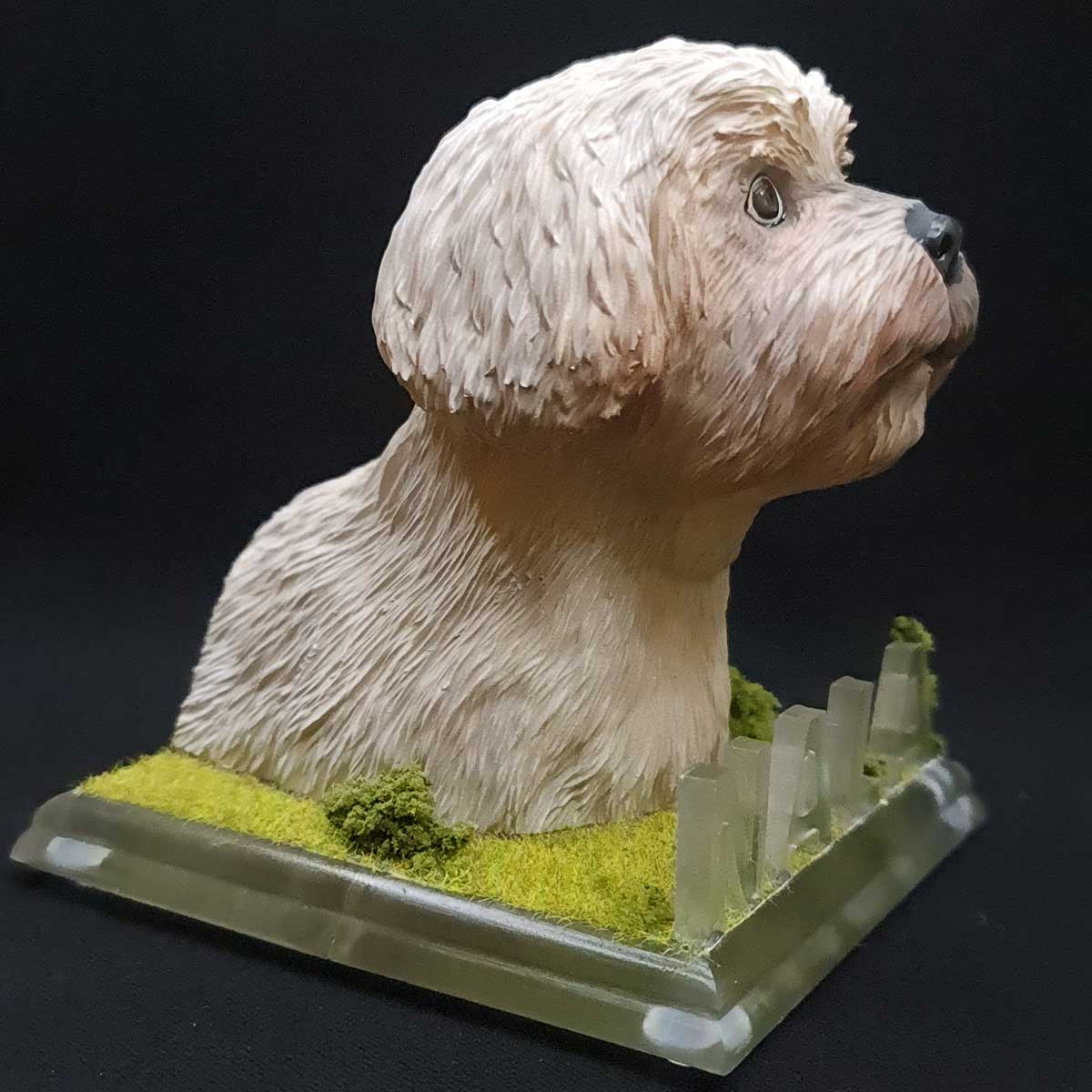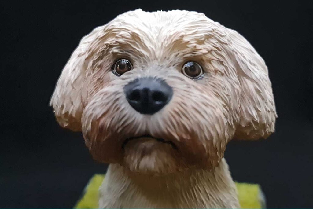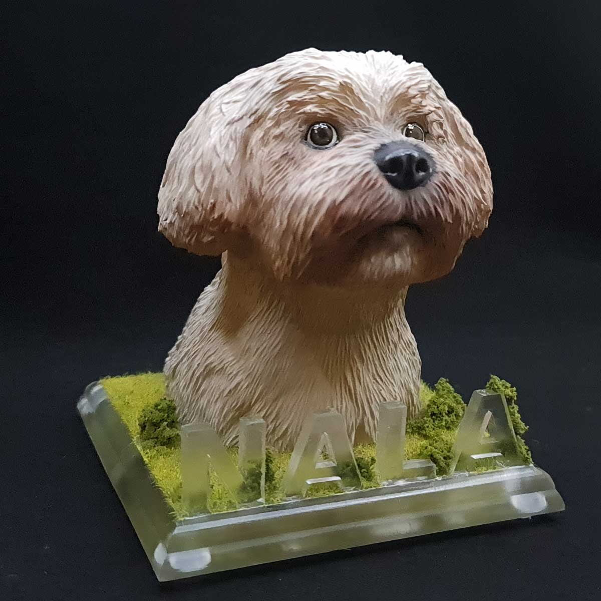 - Decoración Exclusiva en la Base: La base del busto no solo sirve como soporte, sino que también es una obra de arte en sí misma. Está decorada con detalles que realzan la personalidad de tu mascota, creando un ambiente encantador y único.