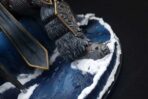 Esta figura de Arthas viene acompañada de un trono que es puro espectáculo visual. No es solo una base decorativa más: está diseñada con efectos degradados en tonos azul hielo que simulan a la perfección el ambiente gélido de Corona de Hielo, y se ha añadido nieve artificial para elevar aún más el realismo.